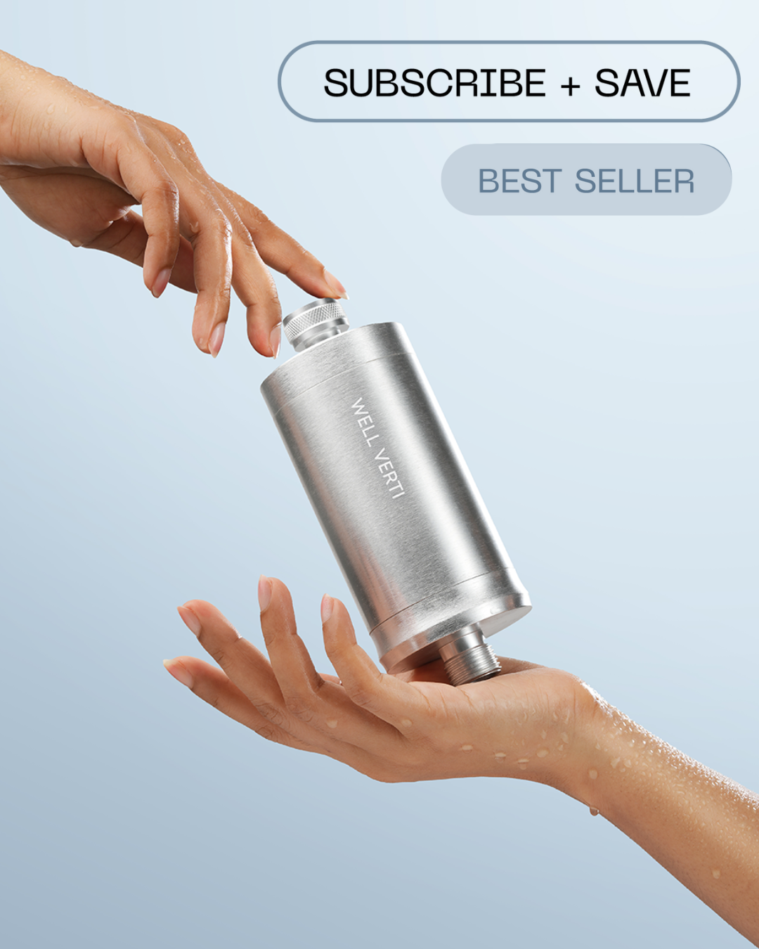 Simply choose the "Subscribe" option when purchasing your Well Verti shower filter, and enjoy a special discount on your first order. You’ll automatically gain access to our Filtered Water Club!
